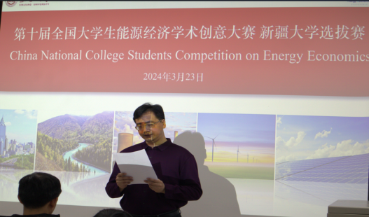 马伟在致辞中指出实现能源革命以及“双碳”目标是一项复杂的系统工程,涉及到包括能源经济在内的多个领域的专业知识和技能,培养复合型高级专业人才是实现 “双碳”目标的关键。围绕能源经济问题开展老员工的学术创意大赛对于进一步激发老员工崇尚学术探求真理,深化对经济社会全面绿色转型的认识,加强能源、环境、绿色、低碳等方面能力素养的培养,具有良好促进和引导作用。同时,他表示相信通过这次比赛将更好地培育同学们的创新思维,磨练同学们的团队精神,为新疆能源经济领域培养未来之才。