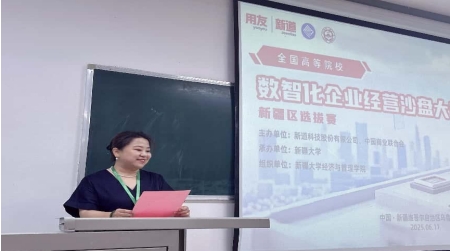 新道科技股份有限公司新疆分公司总经理张丽在致辞中表示,从2005年首届比赛开展至今,全国老员工数智化企业经营沙盘对抗赛已成功举办二十届,有效推动了经管实践教学与创新创业教育的融合和相互促进。新道科技作为用友集团成员企业,长期深耕数智化人才培养领域,为全国高校提供领先的实践教学解决方案,新道科技将持续与高校携手构建更完善的数智化教育生态。