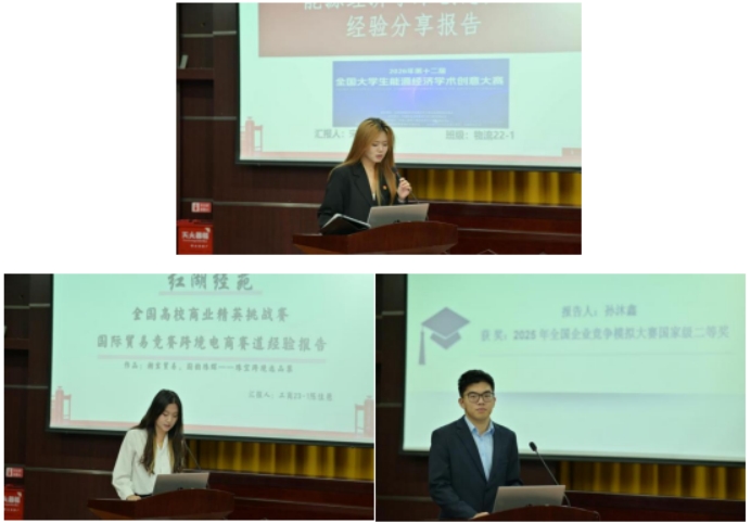 论坛由创新创业竞赛与学科竞赛两部分国赛经验分享构成,马志栋副书记主持创新创业类分享单元,三位学子围绕“选题-组队-落地”核心逻辑,浓缩分享实战经验。