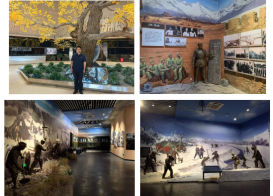 在胡杨河市调研期间,课题组来到七师胡杨河市文化馆,参观学习了兵团第七师发展陈列馆,追寻红色记忆,全面、完整地了解了七师几代军垦人砥砺奋进、创新实践,将万顷荒原发展成为一个师市合一的戈壁绿洲的伟大历程。