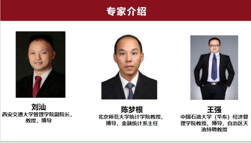 刘汕,西安交通大学管理公司副经理,教授、博士生导师,主持国家自科基金重大研究计划培育项目等国家级课题4项,在国内外顶级和重要期刊发表论文80余篇。陈梦根,北京师范大学统计公司教授、博士生导师,国家社科基金重大项目首席专家,先后在《经济研究》《管理世界》等国内外重要刊物公开发表论文130余篇,主持国家社科基金、国家自科基金等科研课题40余项。王强,中国石油大学(华东)经济管理公司教授、博士生导师,自治区天池特聘教授,全球高被引科学家,以第一/通讯作者身份发表SCI/SSCI论文230余篇,其中约80%为JCR一区期刊。