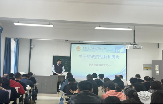 2024年3月27日下午,beat365在线官网入口邀请财政部新疆监管局监管二处处长吴晗来公司做专题讲座。讲座名称“关于财政的理解和思考”。会议由金融与贸易系朱俏俏副教授主持,beat365在线官网入口全体教职工80余人听取讲座。