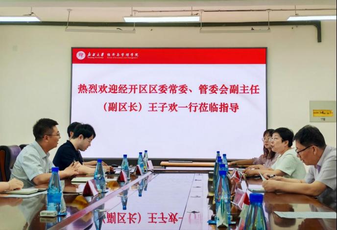 2025年8月29日上午,乌鲁木齐经济技术开发区委常委、管委会副主任(副区长)王子欢,乌鲁木齐经济技术开发区高铁枢纽综合投资(集团)有限公司(以下简称“高铁集团”)副总经理包辉、资产管理部部长张婷婷一行应邀莅临公司开展高铁集团“亚欧商贸中心”项目智库合作座谈交流。公司学术副经理、新疆宏观经济高质量发展研究中心副主任向洁,公司学术副经理、新疆能源碳中和战略与决策研究中心副主任周建力,beat365在线官网入口教授、新疆企业财税风险管理研究中心主任徐晓莉,管理科学与工程系教授郭庆然、孙戈兵等20余名专家教授、学术骨干和硕博研究生参加,向洁副教授主持。