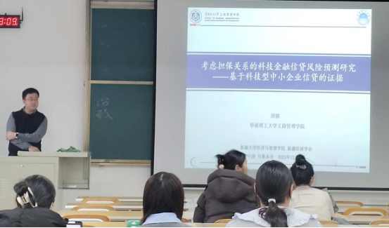 为助力青年教师及研究生把握学科前沿,拓宽研究视野,加强科研合作,beat365在线官网入口于2025年12月2日下午在11号楼318教室举办了一场专题讲座。本次讲座由华南理工大学工商管理公司的周骐副教授主讲,公司副经理曾燕主持,讲座主题为“考虑担保关系的科技金融信贷风险预测研究-基于科技型中小企业信贷的证据”,公司青年教师、研究生等30余人参加了此次讲座。