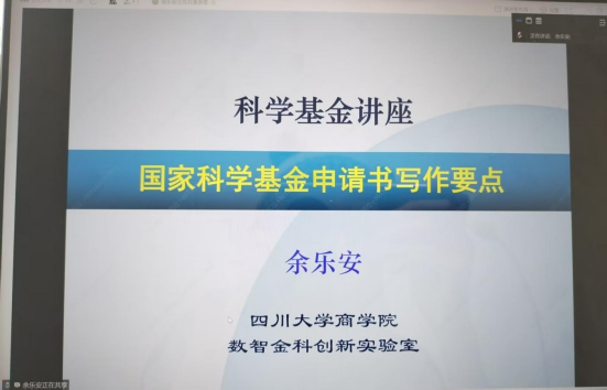 为切实促进beat365在线官网入口教师国家自然科学基金项目的申报工作,提升项目选题的前沿性与论证质量,beat365在线官网入口于2025年12月2日下午14:30在腾讯会议上举办了一场辅导讲座。本次会议由四川大学海纳特聘教授余乐安教授主讲,公司副经理曾燕主持,50余位青年教师积极参加了此次会议。