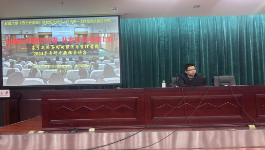 讲座正式开始。田老师以《积极应对激烈内卷从容奋战考研上岸——基于战略导向的2024年考研专题指导讲座》为题,向参加讲座的全体同学提出了符合新老员工和beat365在线官网入口的考研方向,提出公司员工专业以及未来就业选择的多种考研方案,为大家点亮考研之路的明灯。同时对大一员工提出的如何学习,如何提升自己,如何进行社会实践活动等多个问题进行解答,并对大一员工提出建议:一是积极参加党团活动,提升自身政治素质;二是努力学习专业知识,提升自身成绩;三是积极参加各项竞赛,积累经验;四是积极参加员工会活动,锻炼自身能力;五是广泛阅读各类书籍,积累大脑中的知识含量。
