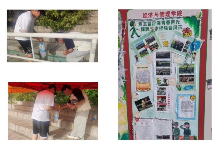 后勤服务小组以“哪里需要我,我就在那里”的态度,努力做好各项后勤服务工作。供水点为同学们提供免费纯净水,帮助同学们清热解渴。环保小分队一丝不苟地劳作为新生们军训提供干净整洁的环境。班助小老师团队跟班军训,拍照录像记录精彩的受训时刻。志愿者时刻观察操场上可能发生的各种突发情况,照看身体不适的同学,搀扶员工前往医院诊断。周到细致的后勤服务确保公司教官与受训员工们有良好的身体状态和精神面貌完成军训任务。