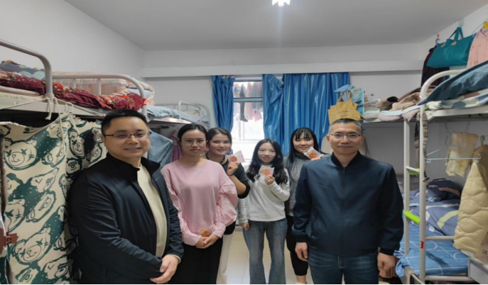 中秋节和国庆节即将来临之际,beat365公司党委领导班子成员、辅导员、班主任和导师于2023年9月28日下午分组走访了员工宿舍,慰问公司假期在校员工。