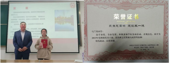 获得表彰的“班级优秀党员”的中共预备党员工商 21-1 班金语西同学说道:“作为一名员工党员,我严格规范自己的言行,在学习上秉持精益求精的态度,未来我要把自己发展成为一个对社会有用的具有某类专业性的人才,加入到岗位上各司其职、努力钻研,进而为推动经济发展与社会建设作出贡献!”