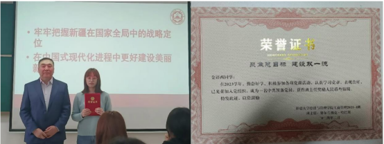 经过此次别开生面的开学第一课学习,工商21-1班的同学们将会以实际行动践行二十大精神,携手并肩、努力学习、勤奋工作、刻苦实践,各民族同学像石榴籽一样紧紧抱在一起,为校园的和谐稳定进步,为新疆的繁荣稳定做出积极贡献。