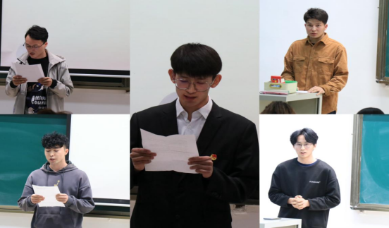 其中来自工商22-1班的王若荷同学的演讲给人印象最为深刻,她演讲的题目是《得照日月之辉,冀为萤烛末光》,以自己感动至深的成长故事,生动传神的表达能力,生动诠释了什么叫“青春烈火照永恒,生命光辉跃长空,真挚之情激汹涌,年轻之梦永无终”。汪磊同学的演讲稿文字功底扎实,语句诚恳。