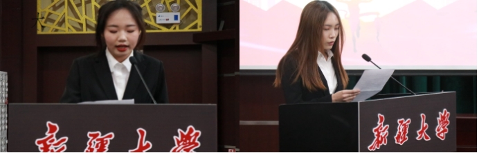 获奖本科生员工代表2022级金融学王睿和研究生获奖代表人口、资源与环境经济学2023级1班博士聂蕊上台发言。她们首先感谢东方证券及东方证券心得益彰公益基金会的奖励资助,感谢公司为员工提供良好的学习环境,感谢老师们悉心教导培养。然后她们分别从专业学习和科研创新的角度阐述了自己在日常生活中的学习方法、科研态度以及对于老员工活的积极理解,用自身奋斗实践向参会同学阐述了大学阶段应有的目标,提出了生活中、学习上可能出现问题的解决方案,号召鼓励更多的同学努力学习追求卓越。