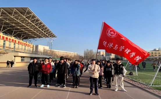 4月8日早晨8:30是经管学子晨跑的第一天,春风拂面,略带一丝寒意;晴空万里,无云天地一体。经管大一年级同学整齐列队,朝气蓬勃,犹如初升的太阳,晴朗但不盛气逼人,又占据操场半壁江山,人气如虹。随着跑步走的号令响起,全体成员进入跑步状态,速度适中,步伐稳健,平稳又富有节奏;热情又积极投入。跑步途中,领跑同学喊出口号“经世济民,管融天下”的嘹亮口号,其他同学随之喊出口号,一时间精神振奋,气势如虹,响彻操场。同学们头上的汗水昭示着肌肉的律动,铿锵的步伐彰显着青春的坚卓,嘹亮的口号激荡着爱校的情怀;同学们在晨跑中抹去了初醒的倦怠,脸上洋溢的笑容给予自身和同学坚持不懈的力量和青春温暖的问候。同学们跑步过程中无人掉队,早退,参跑同学都能以积极的热情投入到本次晨跑活动中。