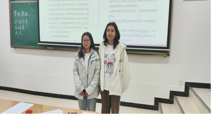 四组同学分别对本组计划进行阐述与介绍,并表明了对帮扶对象倾囊相授的决心,发言完毕后各组在计划书上进行签字,并与搭档合照。帮扶指导小老师员工任佳怡说到:“我与祖丽皮努尔同学曾经是一个班的同学,我们互相更为了解,我明确知道祖丽皮努尔同学在学习方面的不足和优势,可以更好的帮助她补齐弱势,发挥优势,帮扶更加精准有效”。通过分享各小组更加明确了自己的帮扶计划。