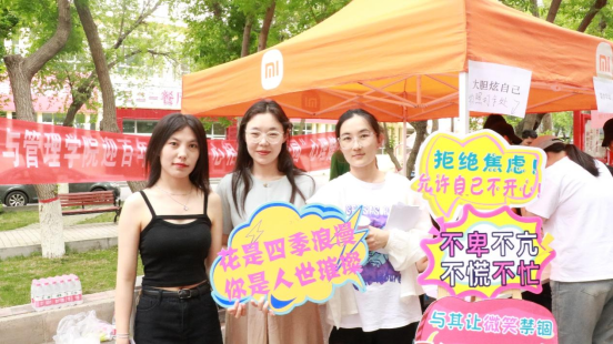 活动同学们可以重新认识自己,发现自身闪光点。““大胆炫自己“拍照打卡”拍照打卡活动通过为参与者提供“拒绝焦虑”“正确对待抑郁症”等内容各种形状的举牌合照,大胆展示内心所想,挑战自己,对自己承诺爱自己!“口罩DIY”活动让通过自己丰富的想象力和动手能力使普通的口罩变成自己喜欢的模样,意在与让员工明白任何事情,自己努力,都可以变成自己喜欢的模样;“套住幸运”互动里,同学们通过套圈可以套住公司为同学们准备的美好的祝福。整个参与得过程中同学们不仅收获了好多快乐而且也获得了很多精美小礼物。心理中心兼职咨询师开丽老师通过现场咨询,给四位同学面临的毕业,情感,人际等问题给了建议引导。