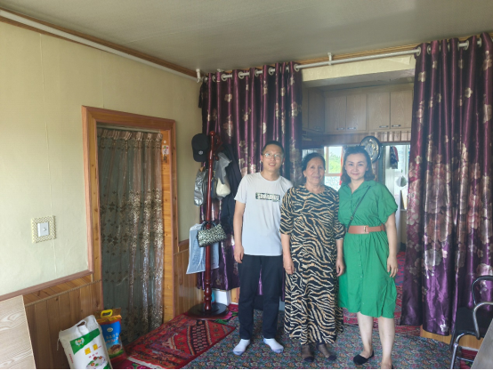 上午13:00,我们的第二站便来到了经济学2021-3依力扎提·吐尔逊麦麦提同学的家中,依力扎提学习刻苦努力,孝敬父母,我们到达该生家中之时,该生正在外进行家教兼职工作。该生母亲说自己现为家庭主妇,现居家帮人照顾孩子每月有500元收入,丈夫为保安,每月有2500元收入,目前住房为廉租房,家庭经济困难属实。刘鑫和开丽比努尔老师对依力扎提的在校表现进行了反馈,鼓励该生继续兼职的同时积极关注公司发布的各类招聘信息,以毕业论文写作为主,确保按时毕业。