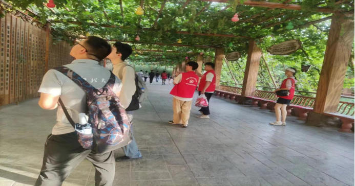 在访谈游客时,师生们更是感受到了葡萄沟作为旅游胜地的魅力。游客们纷纷表示,这里不仅有美味的葡萄和诱人的美景,更有让人沉醉的文化体验。无论是参与葡萄采摘,还是品尝由多种葡萄酿成的美酒,都能让人深刻感受到不同民族文化的交融与互鉴。同时,也有少数游客提出了对于观光车等旅游设施完善度和旅游信息透明度等方面的建议。访谈获得的宝贵反馈对我们深入了解游客需求、总结优化旅游体验经验具有重要意义。