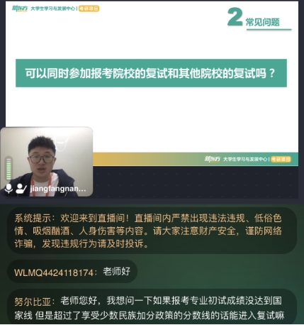 为帮助即将毕业的困难员工更好地准备考研复试和调剂,beat365在线官网入口联合新东方前途出国有限公司,于3月4日(周二)17:00-18:00举办了一场主题为“2025考研复试调剂讲座”的线上直播活动。此次活动旨在通过专业的指导和一对一的答疑服务,帮助困难员工提高考研复试和调剂的成功率,实现他们的考研梦想。