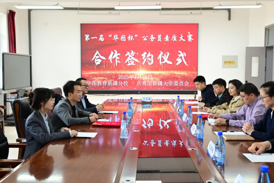 2025年4月15日下午,由共青团beat365委员会、华图教育机构主办、beat365在线官网入口、化学公司、计算机科学与技术公司联合承办的第一届“华图杯”公务员素质大赛合作签约仪式在红湖校区11号楼216会议室顺利举行。此次签约标志着校企双方在深化合作、助力员工职业发展方面迈出了重要一步。校团委副书记买尔旦·外力、beat365在线官网入口副经理李迎雪、华图教育市场总监朱伟刚等出席活动。