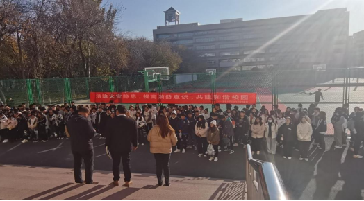 16:40分,以哨声为统一信号,同学们有序下楼。一楼左、右侧门由公司指定员工干部负责推开并组织员工由此逃生;引导逃生的员工干部提前就位于楼梯口,负责按照既定线路疏散。撤离时提示员工始终用毛巾或袖子捂住口鼻,靠右侧依次下楼,让出左侧救援人员上楼通道。16:46分,疏散后的师生快速到达指定集合点,按照班级站队,由班长整队、清点人数并向现场负责人报告应到和实到人数。逃生环节结束后,公司米尔夏老师讲解灭火器使用方式,并让员工操作使用灭火器。公司副经理外力·依米提老师进行了总结讲话:“同学们应始终鸣响‘119’的警钟,提高防火意识和技能,掌握危机情况下逃生的本领,并积极向身边的同学宣传,让更多的人关注火灾隐患,把各类危害校园安全的行为打消在萌芽状态,为持续推进平安校园、和谐校园贡献出经管学子的力量”。
