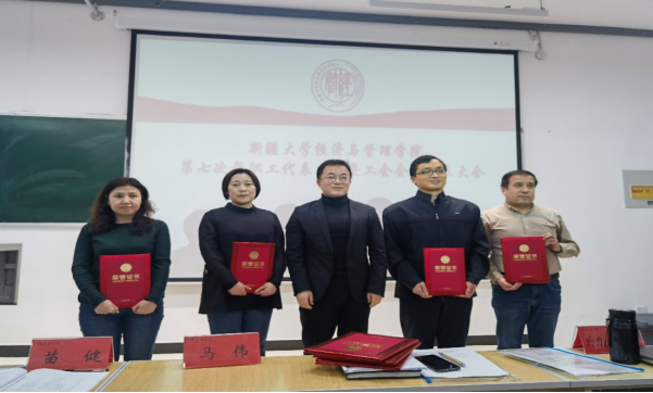 本次大会选举产生7名教师担任第七届工会委员,新一届委员依次上台亮相,并进行了表态发言。