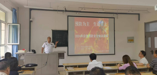 本次活动第一项内容是邀请乌鲁木齐走进消防知识宣传中心特一级教官艾克拜尔给全体教职工进行“预防为主 生命至上”的消防安全知识讲座,艾教官授课既幽默又有激情,专业地讲解获得了老师们的一致好评。