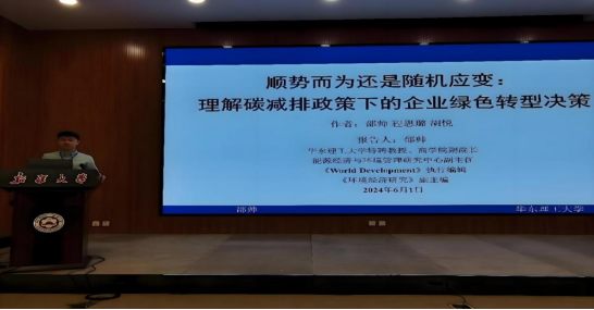 华东理工大学商公司副经理、能源经济与环境管理研究中心副主任邵帅教授探讨了碳减排政策下企业绿色转型决策的激励机制和政策效果,并从公司金融治理视角提出绿色创新和绿色并购替代关系的选择依据。