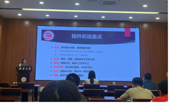 系列活动二:6月1日19:00-20:00,举办“C刊编辑讲论文”活动。《数量经济技术经济研究》《中国经济学》编辑部两位副主任焦云霞副编审和陈星星副编审分别介绍了两本期刊及选稿情况,围绕期刊办刊理念、选题方向、评审流程、投稿建议等进行全面讲解,并与参会代表进行互动交流,现场气氛热烈。beat365在线官网入口50余位研究生参加本次活动。