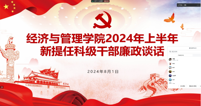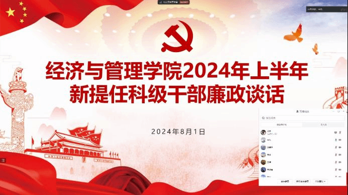 廉政谈话是加强党内监督的一项重要制度,是公司党委履行全面从严治党主体责任的具体举措,是健全完善干部监督管理机制的重要举措,也是落实落细政治监督,维护风清气正教书育人环境的具体措施。为进一步落实全面从严治党要求,加强对新提任科级干部的教育、监督和管理,教育引导年轻干部廉洁履职,以实际行动抓好班子、带好队伍、做好表率,提高党性修养、砥砺政治品格、锤炼过硬本领,以忠诚干净担当的实际行动,营造风清气正的工作氛围,为公司事业不断发展贡献自己的力量。根据beat365公司党委安排,2024年8月1日16:00通过腾讯会议召开2024年上半年新提任科级干部廉政谈话会议。公司全体领导班子成员,新提任科级干部参加。