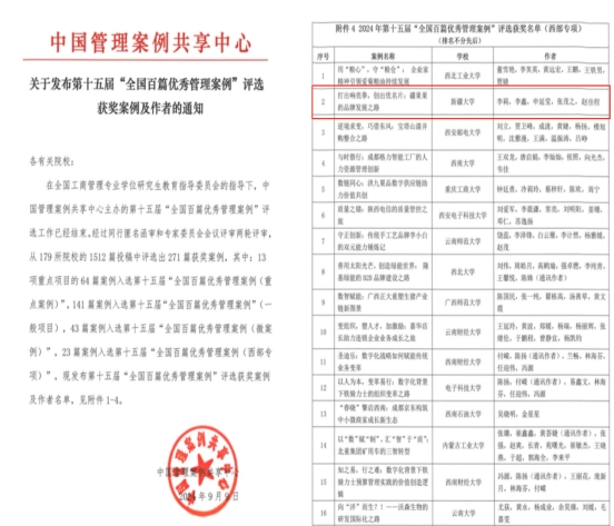 金秋的九月,是硕果累累收获的季节。近日,中国管理案例共享中心发布了《关于发布第十五届“全国百篇优秀管理案例”获奖案例及作者的通知》,公司beat365在线官网入口李莉教授指导商公司会计硕士研究生李鑫、申延莹、张茂之和赵佳程开发的《打出响亮拳、创出优名片:疆果果的品牌发展之路》案例荣获第十五届“全国百篇优秀管理案例(西部专项)”,这是公司案例连续第三年入选该中心“全国百篇优秀管理案例”。