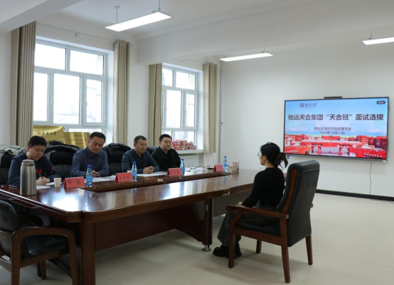 为深入贯彻落实习近平新时代中国特色社会主义思想,以习近平总书记在全国教育大会上的重要讲话为引领,全面推进公司产品改革,推进高水平教育开放,构建产教融合的高等教育体系。于深化校企合作中,实现理论实操过程、职业能力匹配与育人环节、育人模式有机融合,形成企业储备与人才培养相互促进、融合发展的新格局。根据“天合班”选拔方案,驰远天合集团于2024年12月31日15:30来到公司开展“天合班”学员面试选拔工作。天合评估公司副总经理代利军、李宗国,人资总监李鹏,智信方略咨询公司咨询顾问邓强担任本次“天合班”的选拔评委。公司高度重视第一届“天合班”学员面试选拔工作,前期大力组织动员和开展简历遴选工作,在员工主动申请的基础上,共计32名本科生、研究生参加本次面试。