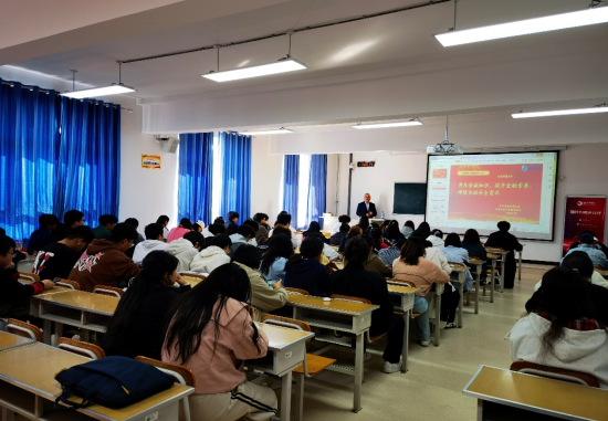 本次讲座主要面向2024级金融学和国际经济与贸易专业的本科生。下午17:00本次讲座正式开始,北京路营业部证券投资顾问马少云老师为我们讲解了非法证券集资的概念以及如何防范非法集资,马老师通过PPT演示的方式为我们展示了非法证券活动的概念,以及非法证券活动的分类,其主要包括非法荐股、非法发行股票、股市黑嘴等形式。为防范老员工被金融诈骗的概率,提升同学们的金融防诈意识和防诈识别能力,马老师给予同学们以下三点建议:一是辨识主体资格,可通过证监会及相关行业协会网站查询合法机构及其从业人员信息,或向当地证监局核实;二是辨识营销方式,合法证券经营机构不会夸大宣传、虚假宣传,会充分揭示业务风险,而不法分子往往自称“老师”“股神”,以稳赚不赔等说法吸引投资者;三是辨识互联网网址,非法证券期货网站网址无特殊意义或在合法机构网址基础上变换,可通过证监会或相关协会网站查看合法网址,不登录非法网站;四是辨识收款账号,合法机构以公司名义开展业务和开立银行账户,非法机构常以个人名义开立收款账户,如有人要求将钱打入个人账户,应果断拒绝。针对同学们关心的如何通过合法合规渠道进行科学理财投资时,马老师为我们介绍了作为新型投资方式的交易型开放式指数基金ETF,全面细致的解读了ETF的市场背景,分析了市场特点与发展趋势。马老师强调,ETF发展潜力巨大,与海外市场相比,境内ETF市场有着较大的发展潜力。美国权益ETF的规模占股票总市值的比例为12.7%,而中国权益ETF规模占市场的比例仅为4%左右,未来在产品供给等方面有广阔的拓展空间。